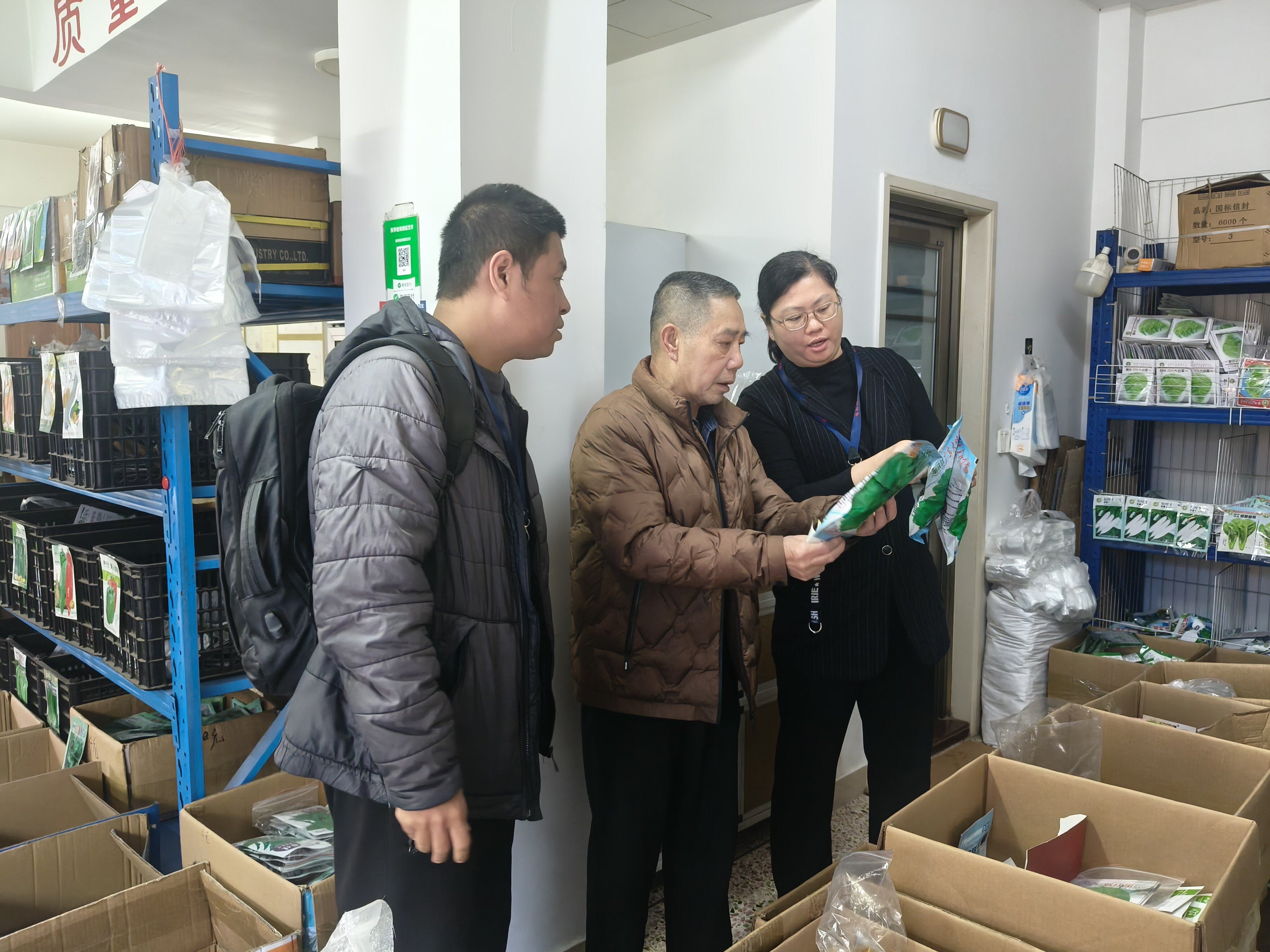 湘桥区纪委监委第三派驻纪检监察组在辖区内某种子店督查农资质量情况。 方思畅摄