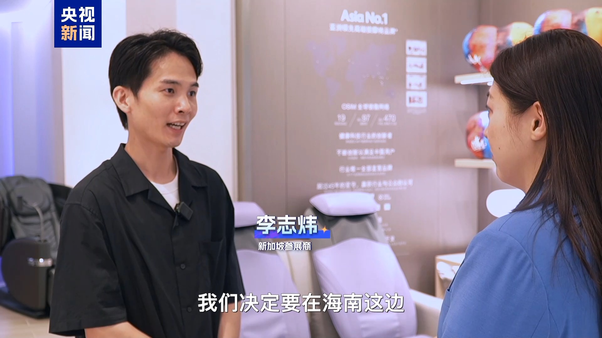 新加坡参展商 李志炜:第一次参加消博会的时候,我们决定要在海南这边打造我们的门店。消博会是一个非常好的平台,体验人数、观众人数、咨询的热度,有非常大的客流,所以第二年第三年第四年,我们每一次都会在消博会带来新产品。